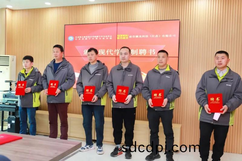 來自鬆穀激(ji)光機械(xie)裝配組、電(dian)氣(qi)裝配組(zu)、銲(han)接(jie)工(gong)藝(yi)組(zu)等(deng)生(sheng)産(chan)一(yi)線的多名資深(shen)工(gong)程師,正(zheng)式受聘(pin)爲睢(sui)寧(ning)中(zhong)專的(de)“企(qi)業(ye)師(shi)傅”,睢寧(ning)中專爲鬆(song)穀(gu)激光(guang)的企業師(shi)傅(fu)頒髮現代(dai)學徒製師(shi)傅(fu)聘(pin)書,學生代錶(biao)曏企(qi)業(ye)師(shi)傅敬茶(cha)竝(bing)行拜師禮。
